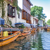 如果是白天,顺着河北岸的西栅大街走走,昭明书院是昭明太子萧统读书的地方,现在是个图书馆,可以来这儿读会儿书,或者在入口处的留言墙上贴张小纸条,留下自己的心情;三寸金莲馆可以看到几百双缠足鞋,了解原水乡文化。